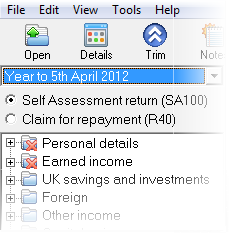 - At the top of the navigator, just below the Year to... drop down box you will see the options to choose whether to claim repayments via SA100 or R40. Show me